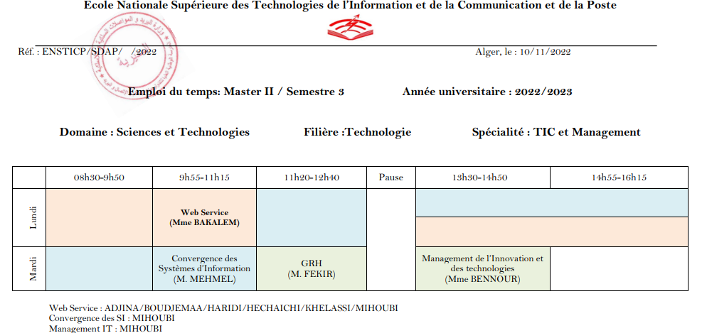 Communiqué pour les étudiants de Master 2 ( MAJ Emplois de temps) admin 24 novembre 2022 Etudiants Emploi-de-temps_Master-II_-S3-2022-2023Télécharger Navigation de l’article Previous Previous post: Communiqué: lancement du service en ligne (E-Service) pour la demande des documentsNext Next post: Planning des examens MASTER2 (S1) (2022/2023)